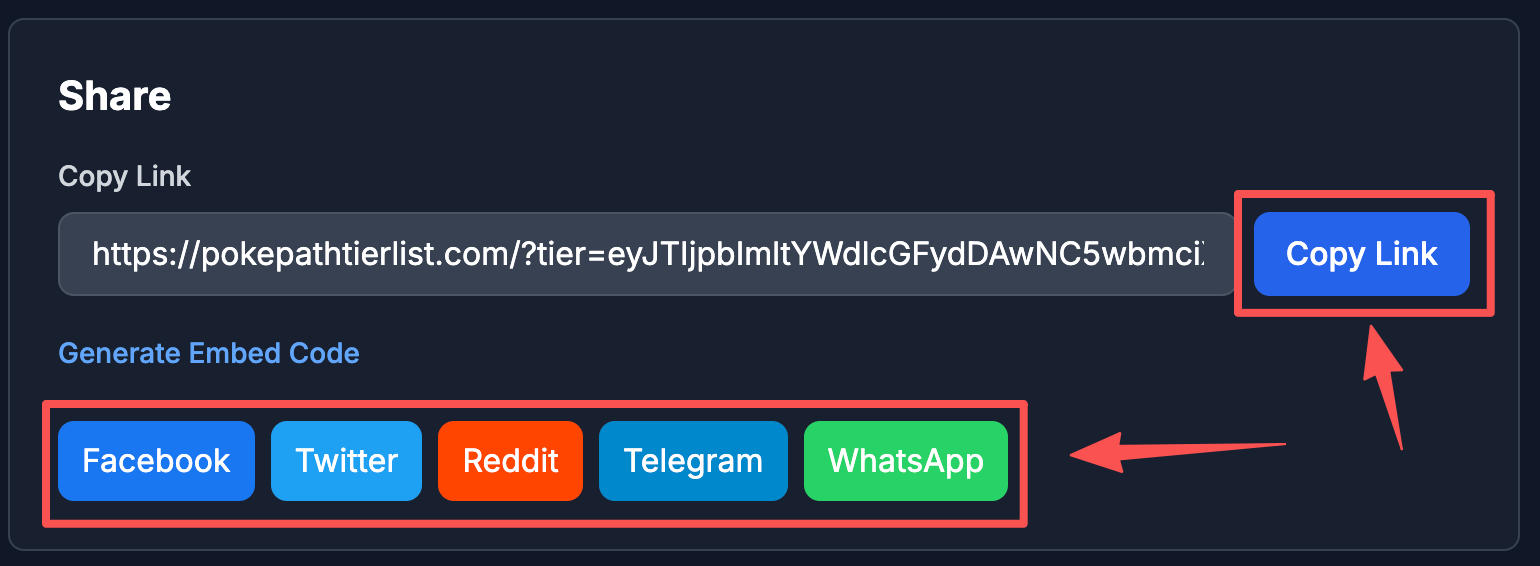 Yes! Click the 'Share' button to get a shareable link. You can also generate an embed code to display your tier list on other websites.